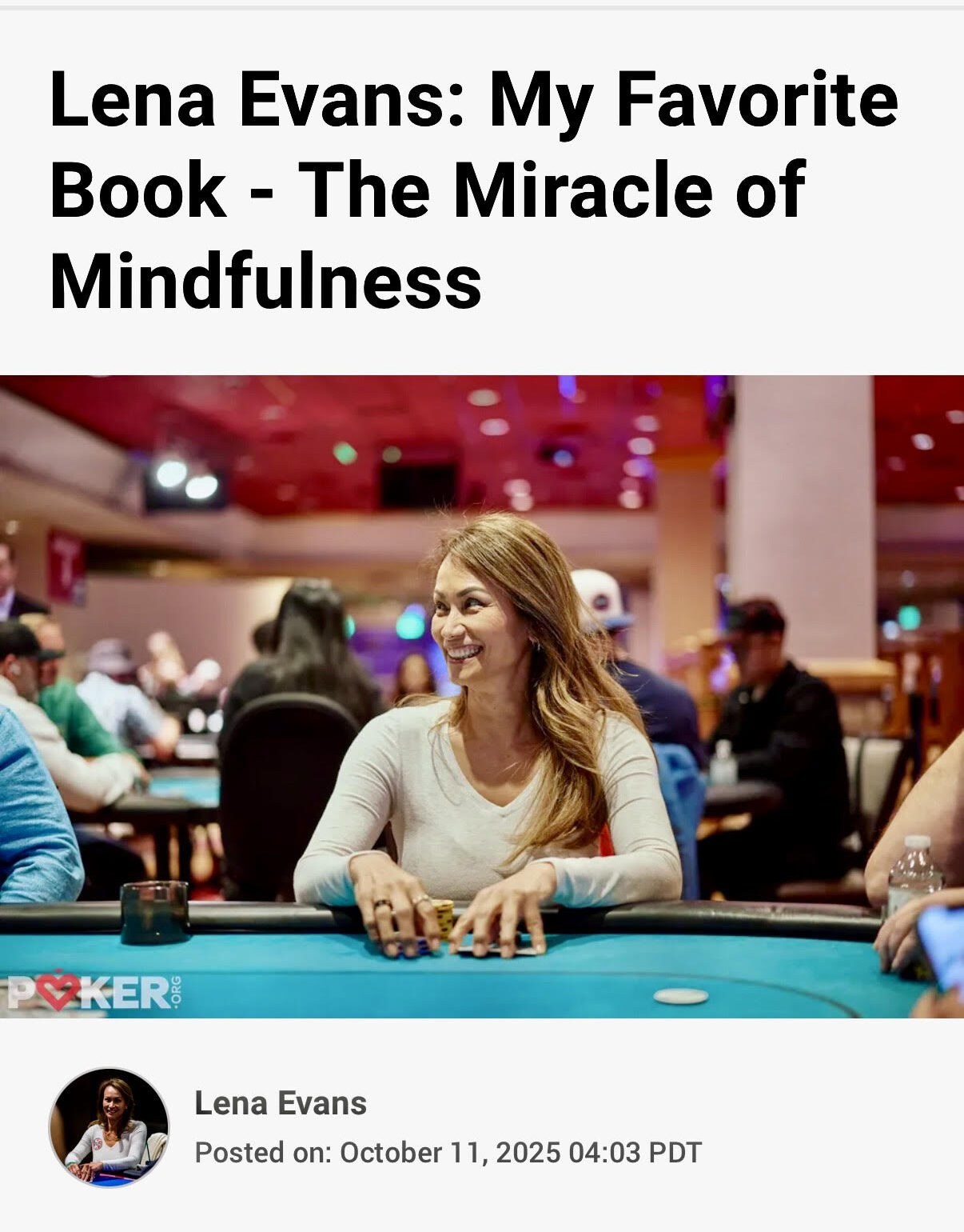 Lena is a published contributor and feature writer for leading business, poker, and cultural outlets. Her commentary explores the inner architecture of high-stakes decision-making—where mindfulness, neuroscience, competition, and human awareness converge. Bridging contemplative wisdom with real-world performance, her writing translates complex ideas into practical insight for players, leaders, and creative thinkers, illuminating how presence and emotional discipline shape both the game and life beyond the table.